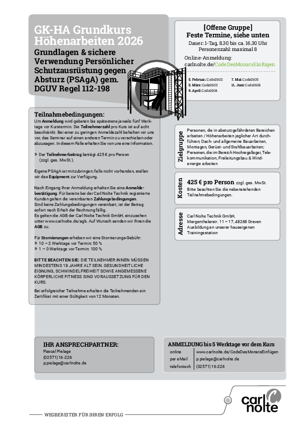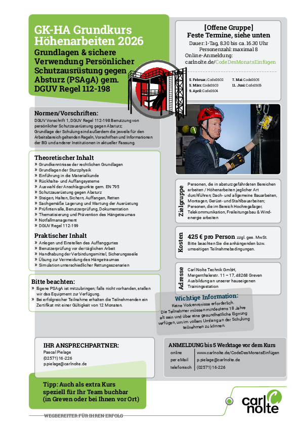 GK-HA Grundkurs Höhenarbeiten [Offene Gruppe] April 2026