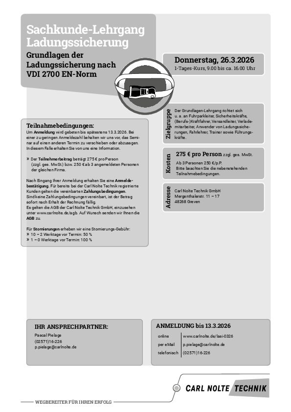 Sachkunde-Lehrgang Ladungssicherung März 2026